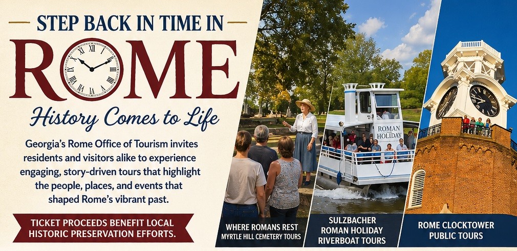 Activities will begin with check-in and registration at 11 a.m., followed by a short presentation at 11:50 a.m. The walk is set to begin at 12 p.m. in front of the Rome City Auditorium.