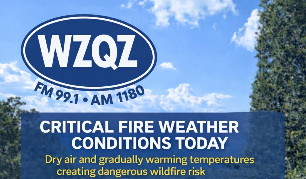 Dry air, clear skies, and gradually warming temperatures are creating dangerous fire weather conditions across Chattooga County and Northwest Georgia today, with concerns expected to continue through the rest of the work week.