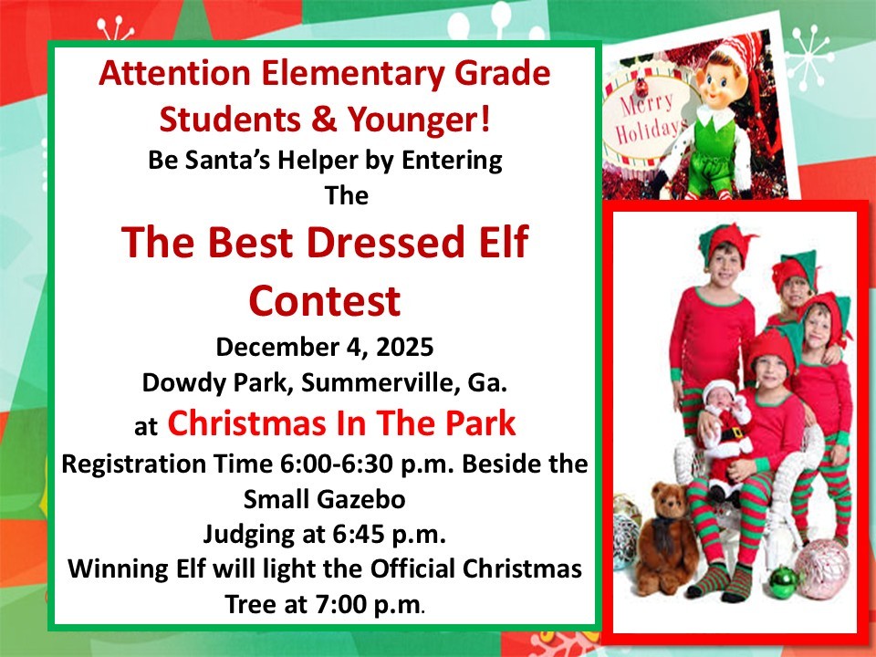 The City of Summerville is inviting families to kick off the holiday season tonight (Thursday, December 4, 2025) with Christmas in the Park at J.R. “Dick” Dowdy Park from 6:00 p.m. to 8:00 p.m.