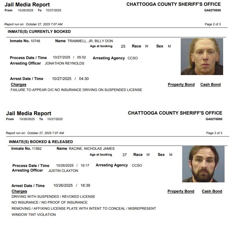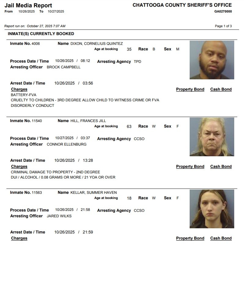 October 27, 2025 by WZQZ NEWS Local News, Local News Items 0 Here is the latest arrest report from the Chattooga County Sheriff’s Office for Monday, October 27, 2025: Facebook Twitter LinkedIn