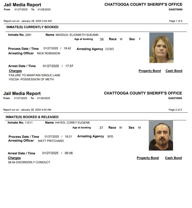 January 28, 2025 by WZQZ NEWS Local News, Local News Items 0 Here is the latest arrest report from the Chattooga County Sheriff’s Office for Tuesday, January 28, 2025: Facebook Twitter LinkedIn