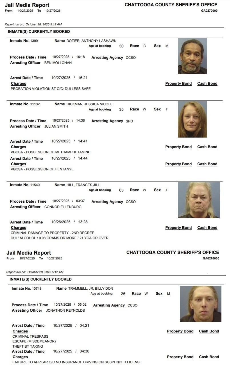 October 28, 2025 by WZQZ NEWS Local News, Local News Items 0 Here is the latest arrest report from the Chattooga County Sheriff’s Office for Tuesday, October 28, 2025: Facebook Twitter LinkedIn