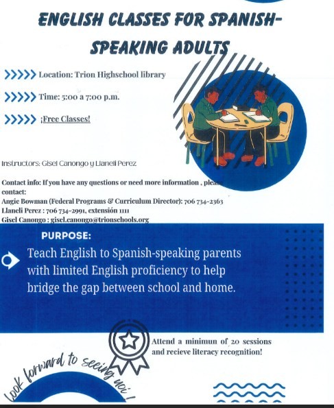 Trion High School is proud to announce the launch of free English language classes specifically designed for Spanish-speaking adults in the community. This initiative aims to empower parents with essential language skills, fostering stronger connections between home and school and enhancing overall community engagement.