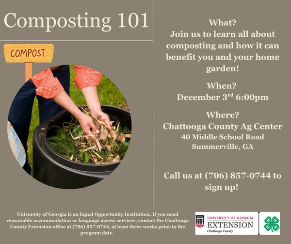 “Have you ever wondered how to boost your soil nutrition with the use of organic materials from your kitchen?” asked a representative from the Chattooga County Extension. “This class will provide the practical steps needed to turn that waste into powerful fertilizer, helping attendees save money on commercial products and achieve higher garden yields through sustainable practices.”