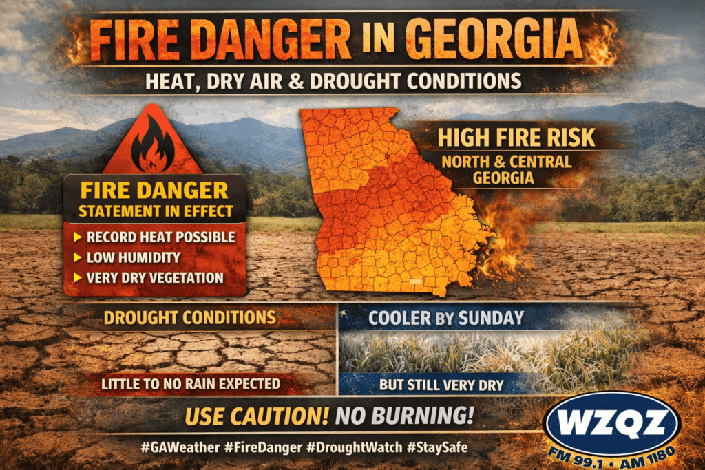 A Fire Danger Statement remains in effect across portions of north and central Georgia as dry vegetation, low humidity, and unusually warm temperatures continue to create dangerous fire weather conditions through the end of the week.