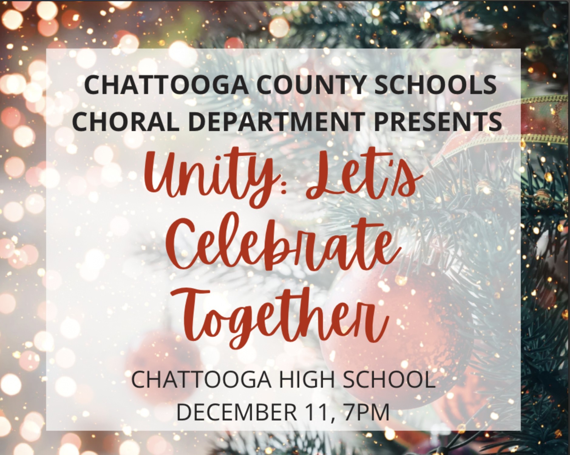 The Chattooga County Schools Choral Department is inviting the community to a night of holiday music with its annual Christmas concert, “Unity: Let’s Celebrate Together,” happening tonight (December 11) at 7 p.m. at Chattooga High School. The program is expected to feature seasonal favorites and performances that highlight the talent and hard work of student singers, offering families a festive way to celebrate the season together while supporting local students.