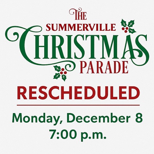 The City of Summerville has announced that due to expected rainfall on Monday, December 1st, the Summerville Christmas Parade has been rescheduled.