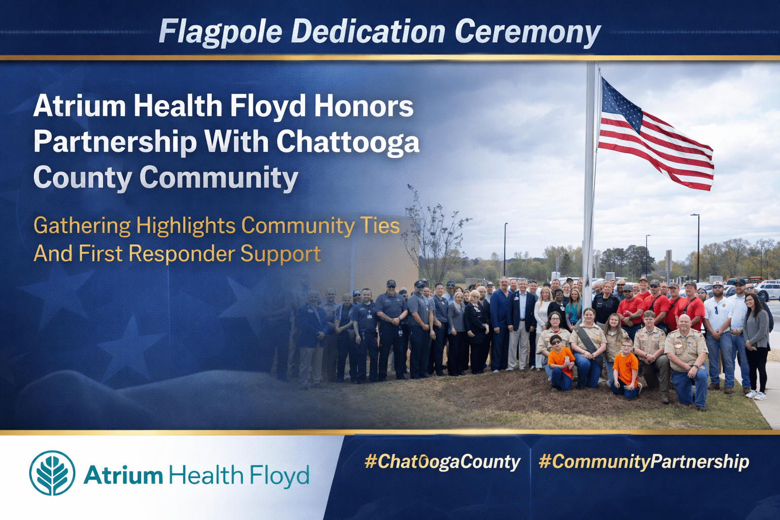 Atrium Health Floyd recently joined community leaders, local organizations, and first responders for a Flagpole Dedication Ceremony at its freestanding emergency department in Chattooga County, highlighting the healthcare system’s longstanding commitment to the community it has served for more than 80 years.