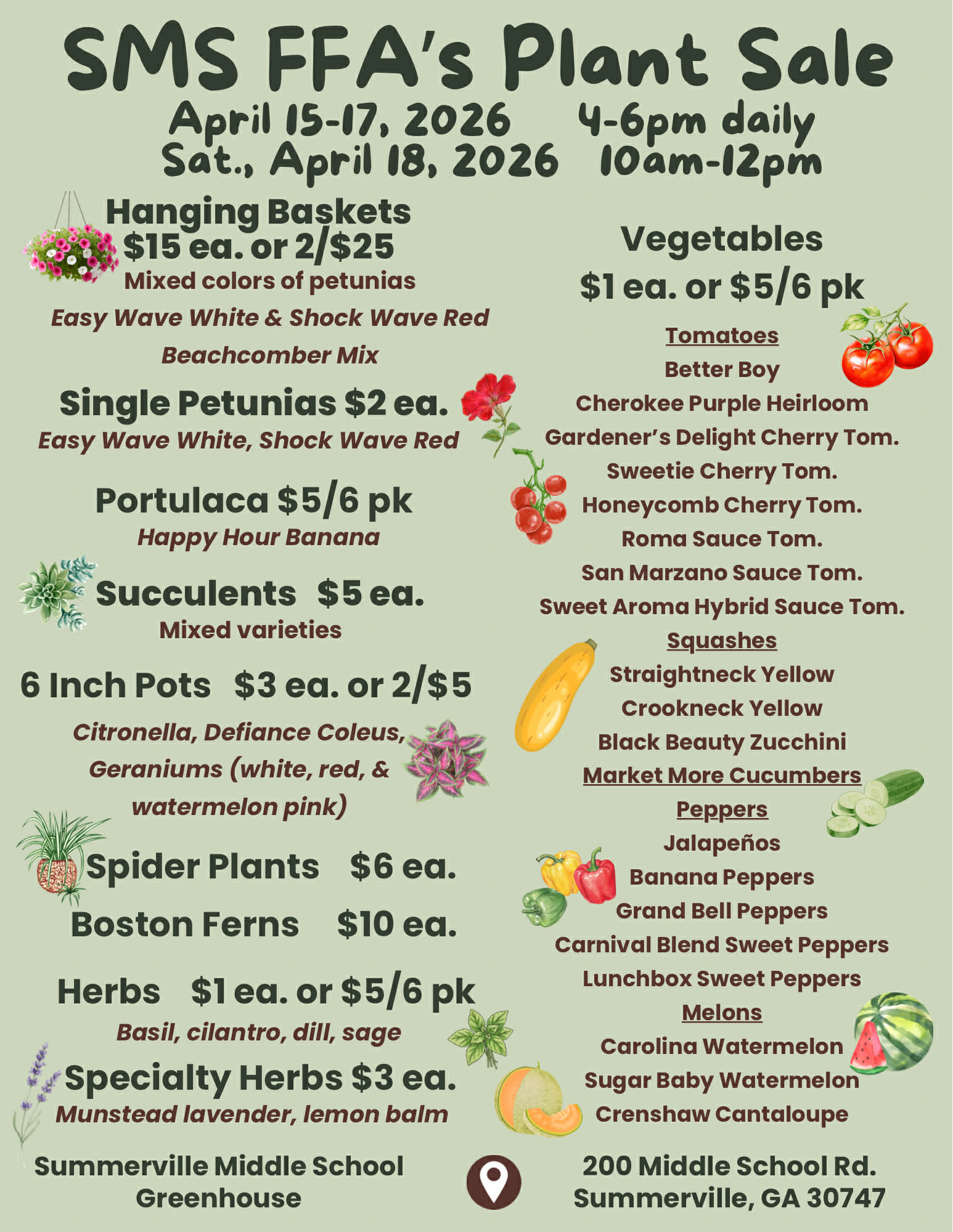 The annual plant sale is a major fundraiser for the Chattooga FFA program, helping support student activities, agricultural education, and leadership opportunities throughout the year. Each purchase directly benefits local students involved in FFA.