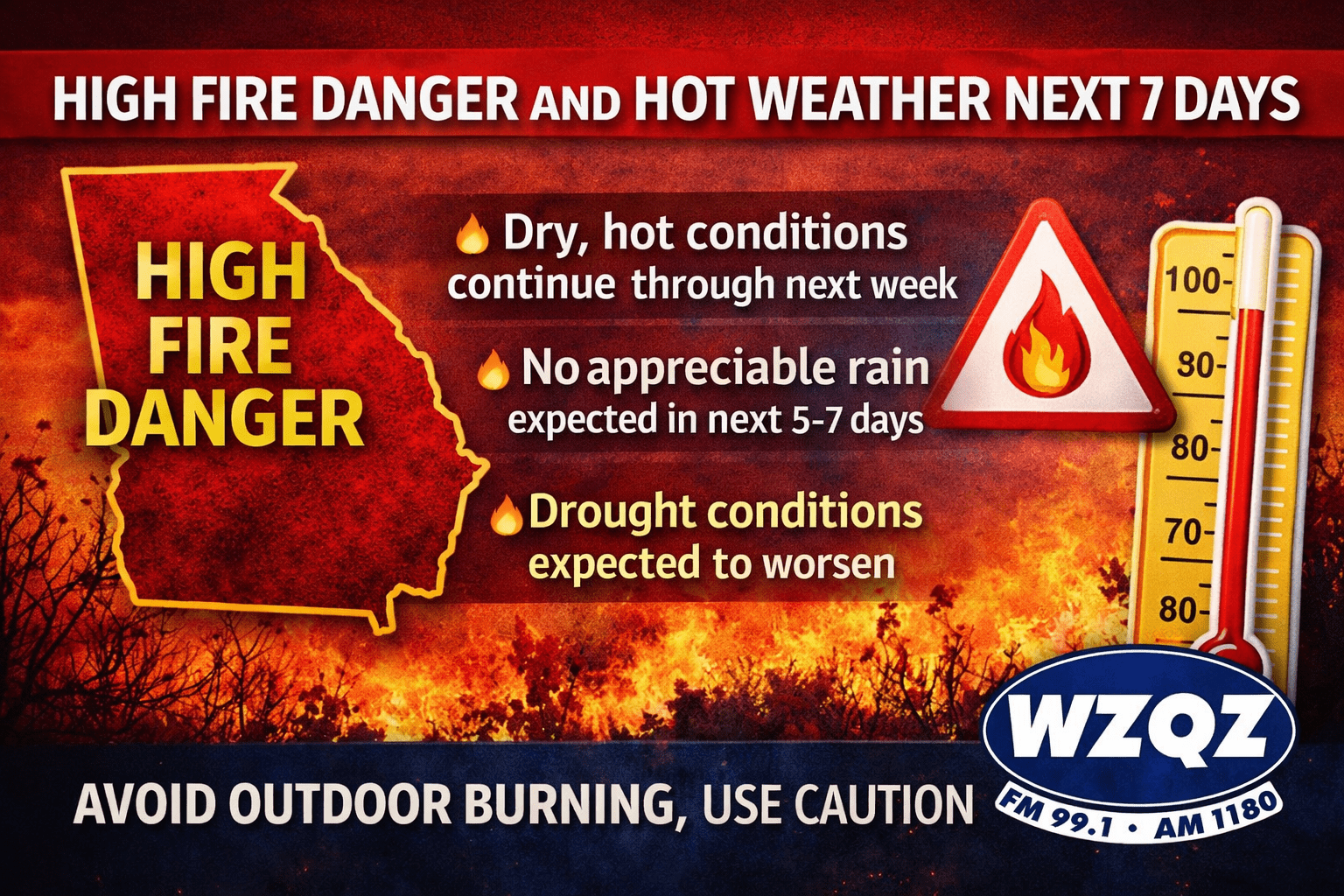 High fire danger conditions are expected to return across Chattooga County and much of Northwest Georgia today as very warm, dry weather continues to grip the region.