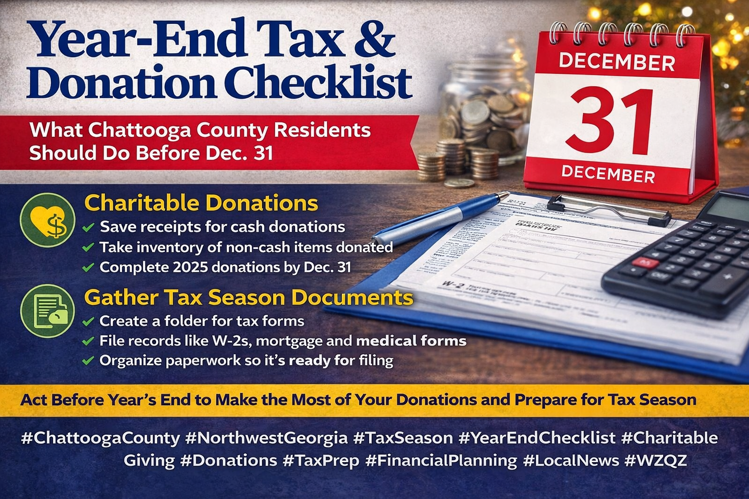 As the year wraps up across Chattooga County and Northwest Georgia, the final days of December are a key window for anyone trying to get organized for tax season—especially when it comes to charitable giving and last-minute tax planning. Here are a few reminders to consider before the calendar turns: