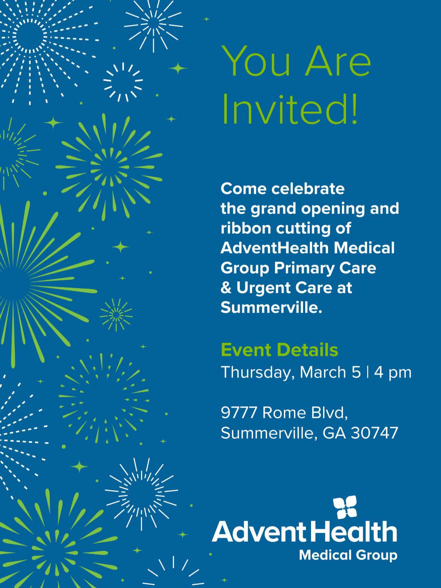 Community leaders, healthcare professionals, and residents are invited to celebrate the grand opening and ribbon cutting of the new AdventHealth Medical Group Primary Care and Urgent Care facility in Summerville.