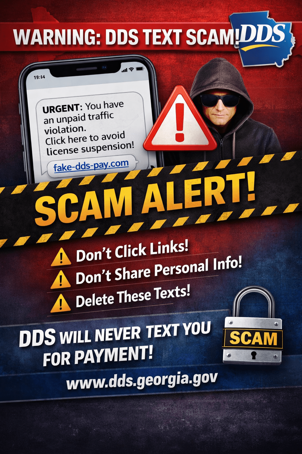 Georgia officials are warning residents to be on alert after a wave of scam text messages claiming to come from the Georgia Department of Driver Services (DDS).
