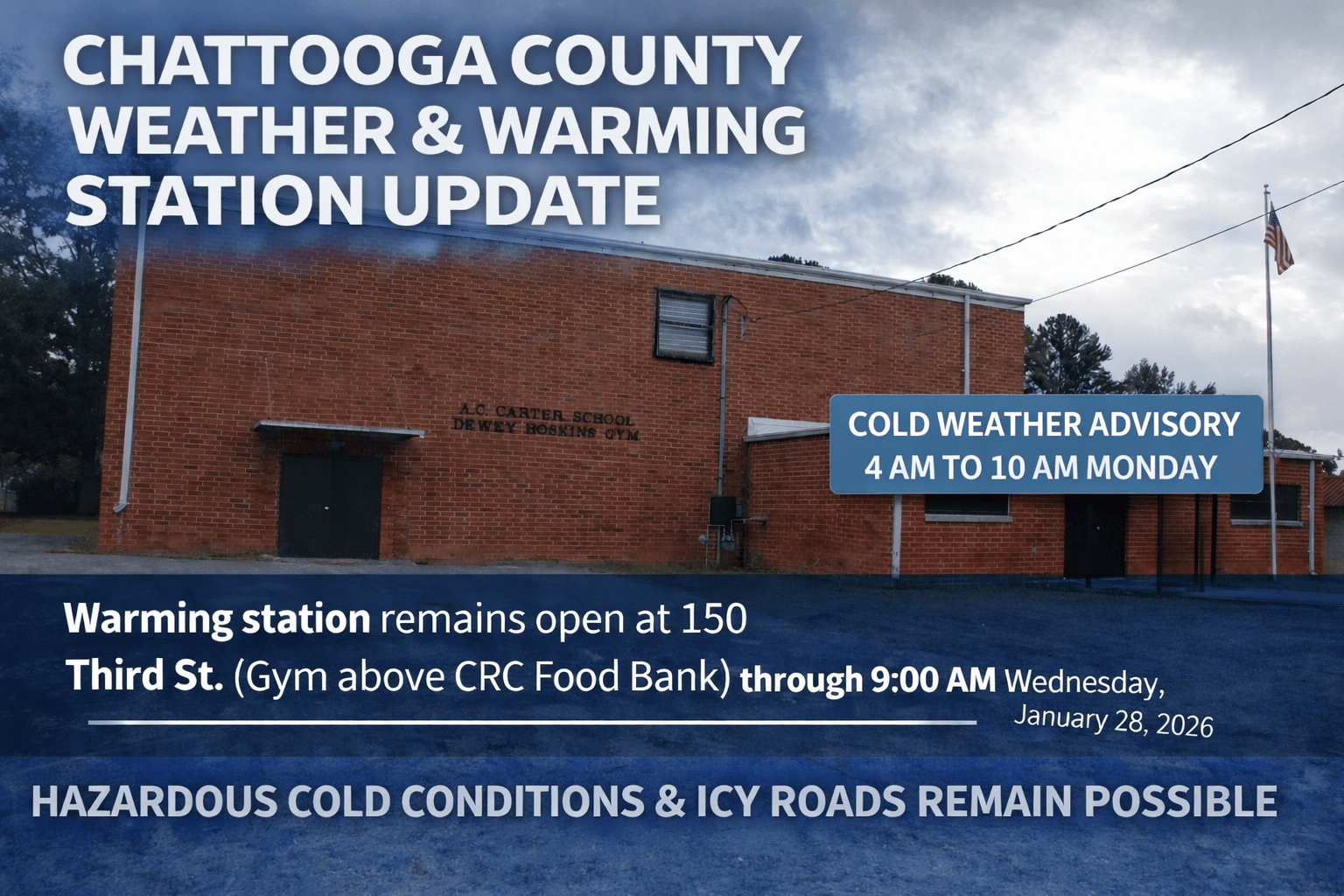 The message from CRC is simple: don’t stay home without heat, food, or help—use the resources available. CRC ended its announcement with a reminder of community strength: “We are in this together. We are Chattooga Strong.”