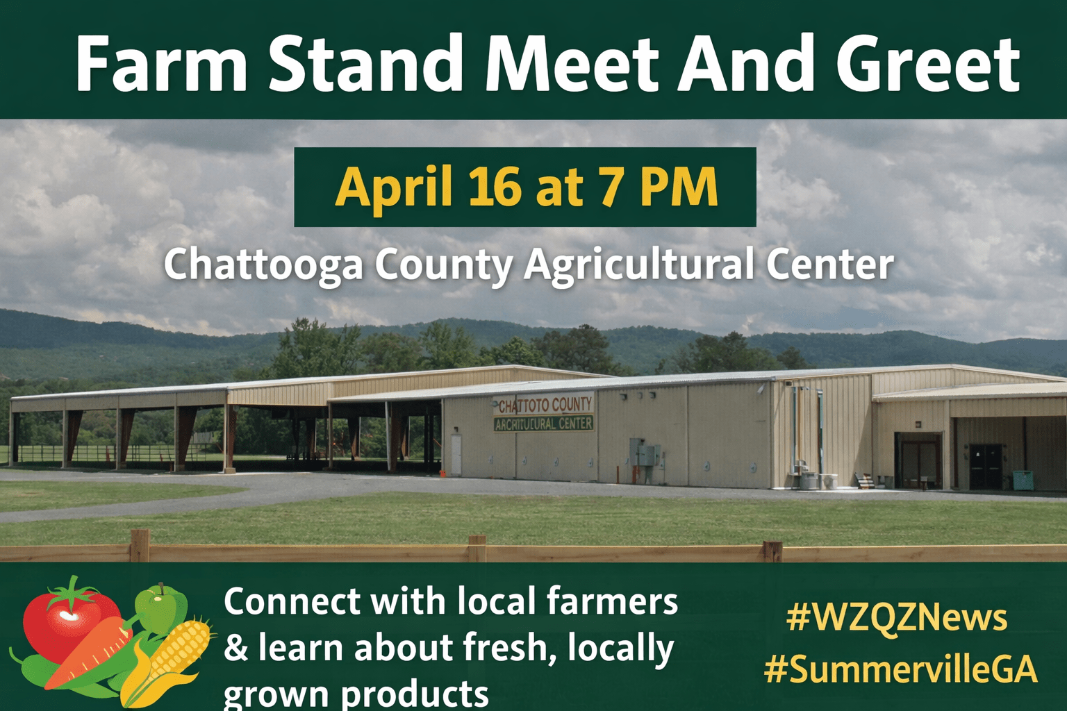 Hosted by the Chattooga County Young Farmers, the meet and greet is designed to highlight local farm stands and give producers a chance to showcase what they offer. Participants will be set up with tables to display goods, share information, and connect with the community.