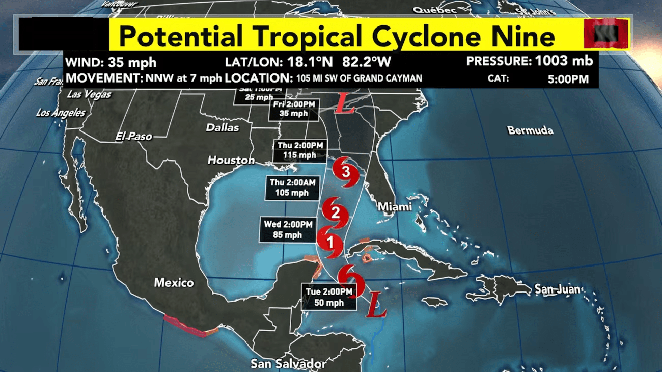 As Potential Tropical Cyclone Nine approaches the northeastern Gulf Coast, forecasters are closely monitoring its potential to rapidly intensify into a major hurricane. The current projections indicate the system will make landfall sometime between Thursday morning and Friday morning, with the most likely scenario being a landfall around 8 PM on Thursday. This fast-moving storm is expected to track to the north and north-northeast, steered by a combination of a mid to upper-level trough to the west and a mid to upper-level ridge to the east.